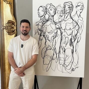 Live Painting Performance: Martin Tardy zeichnet für die 25. neunerhaus Kunstauktion.